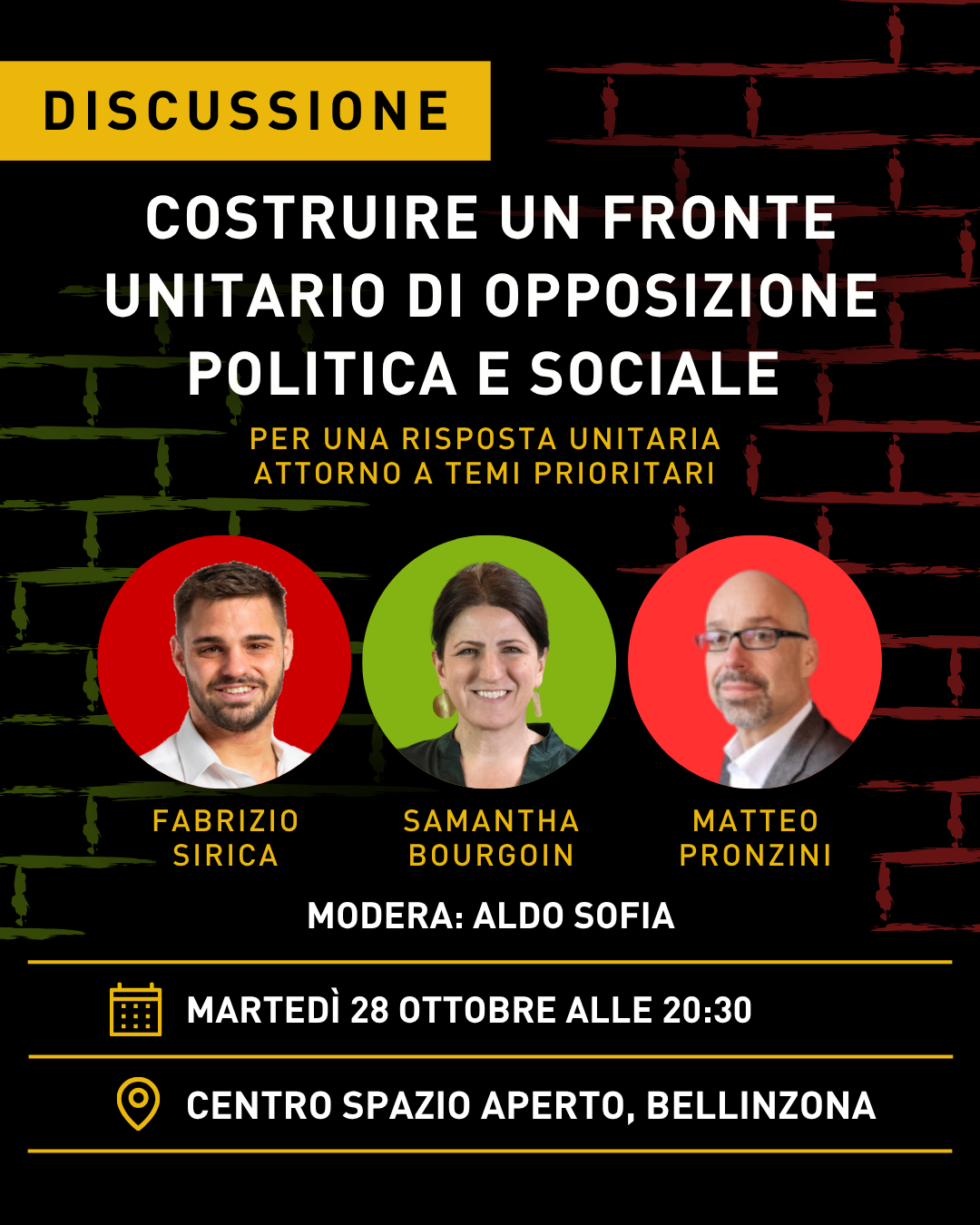 Alla discussione interverranno Fabrizio Sirica (PS), Samantha Bourgoin (Verdi) e Matteo Pronzini (MPS), con la moderazione del giornalista Aldo Sofia.