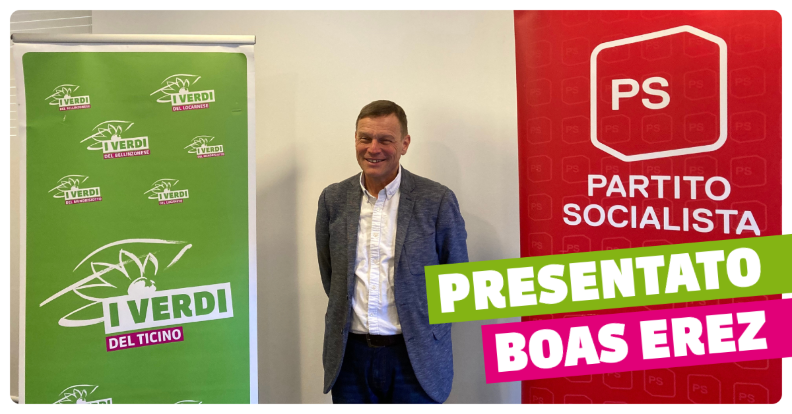 Riuniti in conferenza stampa, Laura Riget del PS Ticino e Marco Noi dei Verdi del Ticino hanno presentato stamattina la candidatura di Boas Erez, quale quinto nome sulla lista “Socialisti e Verdi” per l’elezione al Consiglio di Stato della prossima primavera. Quale rappresentante di spicco della società civile, Boas Erez va quindi a completare la lista rosso-verde per il Governo, affiancando Samantha Bourgoin (Verdi del Ticino), Marina Carobbio (PS Ticino), Yannick Demaria (Gioventù Socialista) e Nara Valsangiacomo (Giovani Verdi).