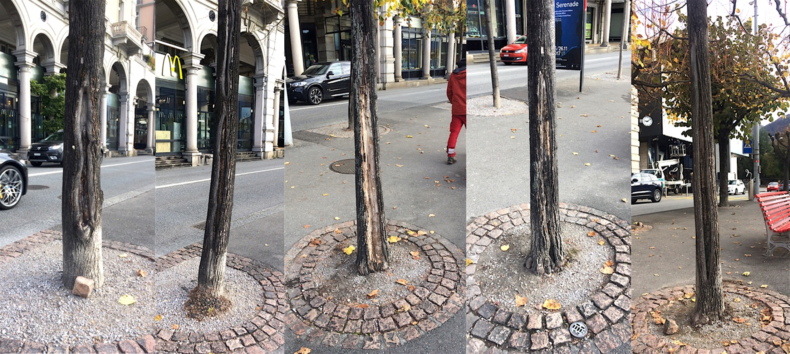 Purtroppo ad oggi non abbiamo ancora visto nessun documento e nessun inventario degli alberi degni di protezione. Nel frattempo, inverno dopo inverno, la Città abbatte alberi iconici, tutt’altro che in fin di vita, sostituendoli, nel migliore dei casi, con alberelli giovani. Si dimentica tuttavia che un albero urbano adulto assolve in misura nettamente maggiore le funzioni, a favore della qualità di vita e dell’attrattiva turistica, del verde cittadino, come suscitare bellezza e generare paesaggio, assorbire rumori, polveri fini e gas inquinanti, aumentare l’infiltrazione di acqua nel suolo alleggerendo i sistemi fognari, supportare biodiversità, abbassare le temperature estreme d’estate regalando ombra e frescura, ecc.